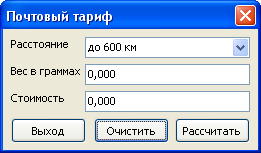 В рамках данной курсовой работы была поставлена задача: разработать программное обеспечение определения стоимости почтового тарифа пересылки бандероли наложенным платежом.