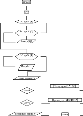 write (' 2 - решение системы линейных уравнений матричным методом => ');