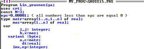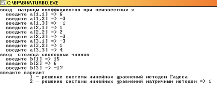 writeln (' 1 - решение системы линейных уравнений методом Гаусса ');