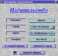 Открытие формы "Добавление автора" в режиме ввода данных.