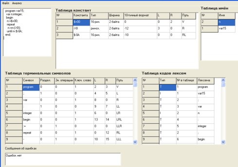 ‘var15’, ‘n’. Их следует записать в таблицу идентификаторов.