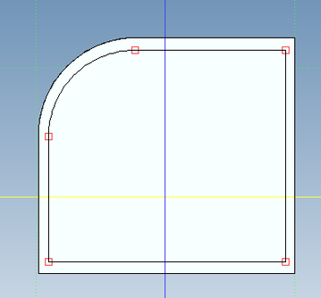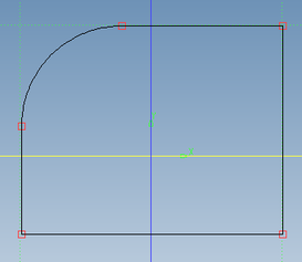 Создавать 3D-чертеж начнем с вида спереди (рис. 2.1). На рабочей плоскости начертим прямоугольник, в левом верхнем углу которого создадим скругление (радиус скругления 80мм).