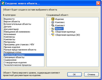 Архив создаем в Хранилище, в каталоге Поток 500, под названием Герасимова О, гр. 5410. Для этого в контекстном меню выбираем: Создать – Объект – Сборочные единицы – Проект. В открывшемся окне Свойств проекта задаем название и обозначение, заводской код, ФНН, вид проекта – Курсовой проект.