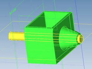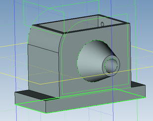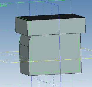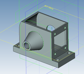 Далее необходимо оформить верхнюю часть детали. Она должна быть открытой. Для этого на левой боковой грани чертим прямоугольник и , произведя его выталкивание, получаем следующую фигуру (рис. 2.8). Этот созданный параллелепипед отнимаем от исходной детали с помощью Булевой операции. В итоге получаем полую конфигурацию, открытую сверху (рис. 2.9).