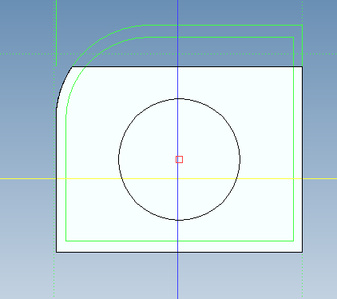 -на рабочей плоскости вида спереди чертим прямоугольник со скругленным углом, повторяющий по форме внутреннюю полость детали (рис. 2.6);