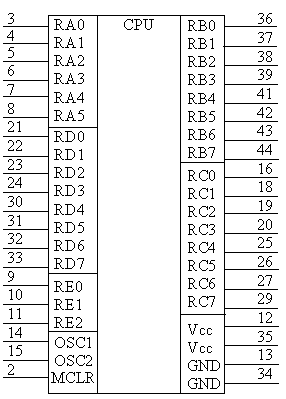 Рис. 1. Условно-графическое обозначение микропроцессора БИС PIC16F877