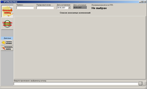При проектировании пользовательского интерфейса на основании выделенных прецедентов (курсовой проект по дисциплине теория информации) было принято решение разместить все управляющие элементы на двух панелях, переключение между которыми осуществляется нажатием одной из двух соответствующих кнопок на навигационной панели. Одна панель предназначена для выполнения заявки сотрудником СПТЗ, другая – для получения выходных форм телемехаником.