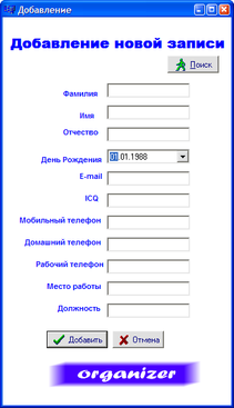 Рис.8. Форма добавления новой записи в Адресную книгу