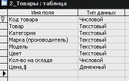 Рисунок 2.1 2-таблица “2_Товары”, открытая в режиме “конструктор”.