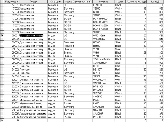 После выполнения запроса таблица "Black телевизоры (на добавление)" будет иметь вид, представленный на рисунке 2.2.6.2.