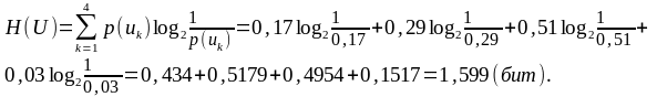 а энтропия источника H(U) в соответствии с формулой (1.4) [1] равна: