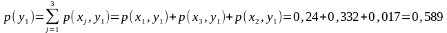 находятся безусловные вероятности p(xk) и p(yk), которые потребуются при дальнейшем решении: