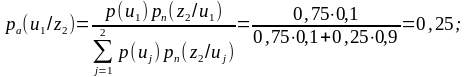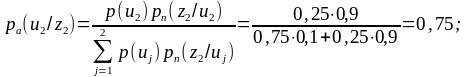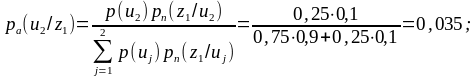 с априорными вероятностями p(U1)=0,75 и p(U2)=0,25.