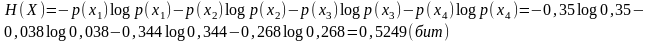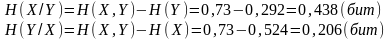 3) Для нахождения среднего количества информации, даваемое сообщением X при условии, что сообщение ансамбля Y уже известно, т.е. нахождение энтропии ансамбля H(X,Y), используется формула определения энтропии объединённого ансамбля: