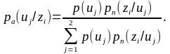 - апостериорные вероятности того, что на входе канала имел место символ ui при условии, что на выходе наблюдается zj.