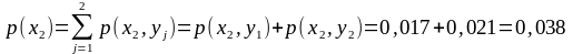 p(y2) = p(x1, y2) + p(x2, y2) = 0.17 + 0.09 = 0.26