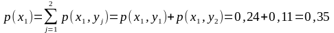 p(x1) = p(x1, y1) + p(x1, y2) = 0.47 + 0.17 = 0.64