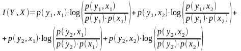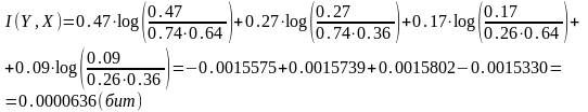 Величина I(Y,X) показывает, сколько в среднем бит информации о реализации ансамбля Y дает наблюдение реализации ансамбля Z. Подставив в эту формулу в выражение для вычисления энтропии и условной энтропии: