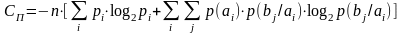 Если символы источника сообщений неравновероятны и взаимозависимы, то энтропия источника считается по формуле общей условной энтропии.