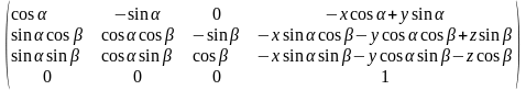 Для преобразования координат точки из одной системы координат в другую необходимо умножить матрицу преобразования на столбец координат точки.