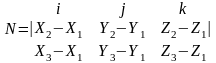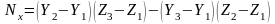Определяем нормаль к треугольнику, для этого умножим векторно два вектора