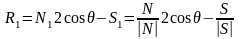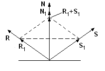 Обозначим отраженный луч через R, вектор, направленный против падающего луча - S, вектор нормали - N. Рассмотрим единичные векторы этих векторов R1, S1, N1. Так как все три вектора находятся в одной плоскости, то можно записать R1+S1=N’. Длина вектора N’ равна 2cosθ. Так как векторы N’ и N1 сонаправленные, то можно записать: