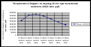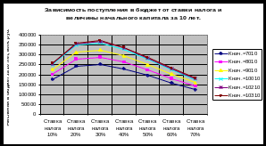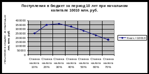 Зависимость поступлений в бюджет от ставки налога и величины начального капитала за период 10 лет.
