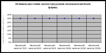 При изменении начального капитала фирмы ставка налога остается неизменной, равной 30%. Чем больше начальный капитал фирмы, тем больше отчисления в бюджет. Следовательно, государству выгоднее облагать более высокими налогами.