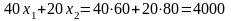 Координаты точки К(60;80) находятся путем решения системы уравнений прямых (2) и (3). Т.е. в этой точке предприятие будет производить 60 шт радиоприемников первой модели и 80 шт радиоприемников второй модели. Подставим