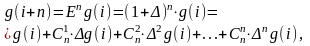 Повторное применение оператора сдвига позволяет выразить значение ординаты функции g(i) в точке (i+n) через конечные разности различных порядков: