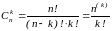 - число сочетаний из n элементов по k ;