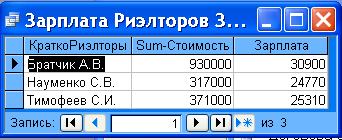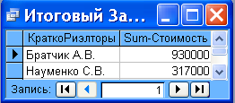 Підсумковий запит створюється теж за допомогою конструктора: визначається суму операцій кожного співробітника.