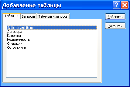 - Вибираю таблиці «Операции» , «Недвижимость» .