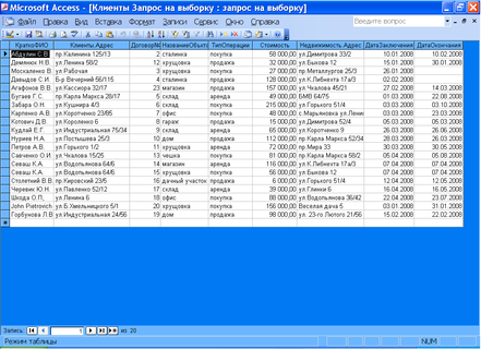 В БД «Ріелторське агентство» є два запити на вибірку Запит на вибірку «Договора» та Запит на вибірку «Клиенты ».