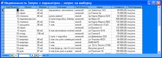 Створюю запит на вибірку по нерухомості. Для цього: