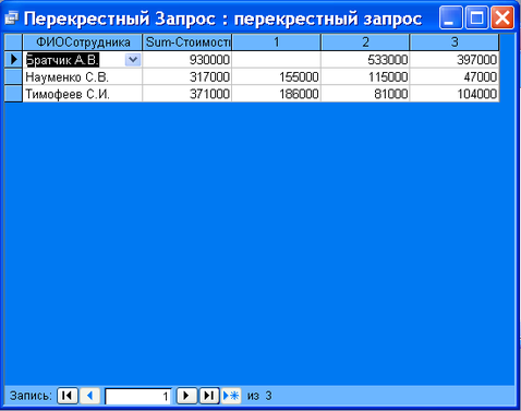 Виконання перехресного запиту показане на мал.16.