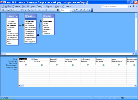 Створюються вони аналогічно, тому докладно опишу наприклад Запит на вибірку «Клиенты ».