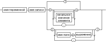 Аналізуючи цю синтаксичну діаграму, можна зробити висновок, що ініціалізація елементів запису здійснюється достатньо гнучко. Розглянемо декілька варіантів ініціалізації.