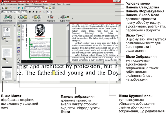 FineReader - омніфонтова система оптичного розпізнавання текстів. Це означає, що вона дозволяє розпізнавати тексти, набрані практично будь-якими шрифтами, без попереднього навчання. Особливістю програми FineReader є висока точність розпізнавання і мала чутливість до дефектів друку, що досягається завдяки застосуванню технології "цілісного цілеспрямованого адаптивного розпізнавання".