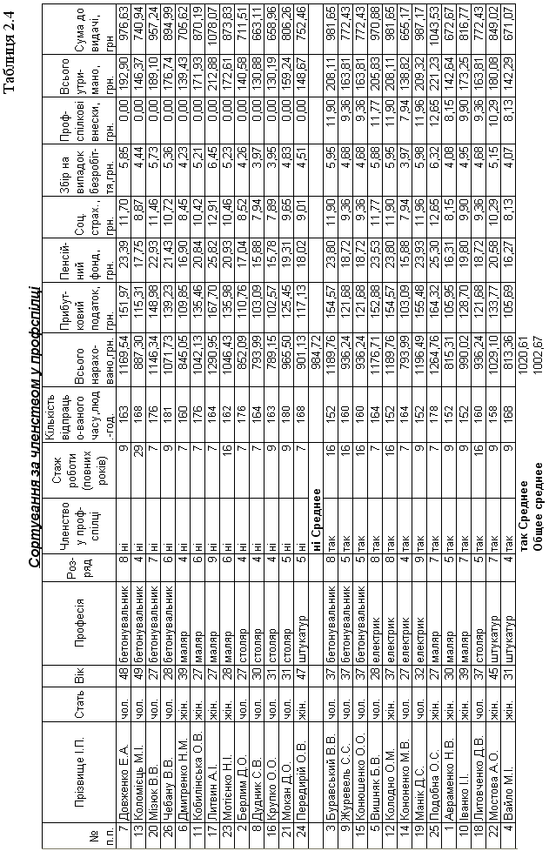 в) поле «Членство у профспілці» відфільтроване за значенням «ні» у списку значень у даному стовпця (табл. 2.2).