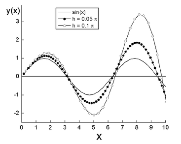 ). Єдиний спосіб оцінити масштаби похибки, що наросла – провести декілька пробних підрахунків з різними кроками по х.