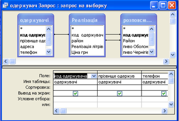 • опис структури запиту (тобто вказівка того, яка інформація повинна виводитися в колонках таблиці запиту);