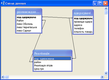 Механізм опису логічних зв'язків між таблицями в Access реалізований у вигляді об'єкту, який називається Схемою даних. Перейти до її створення можна з панелі інструментів база даних, доступною з головного вікна.