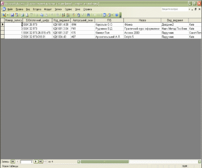 Оформивши таблицю БД бібліотечного фонду “Тальнівського будівельно-економічного коледжу УДАУ”, заповнивши поля інформацією, а також встановивши зв’язки між таблицями можна переходити до безпосередньої роботи з базою даних.