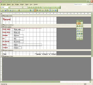 Область даних - головна область звіту, де розміщуються текстові поля та інші елементи управління.