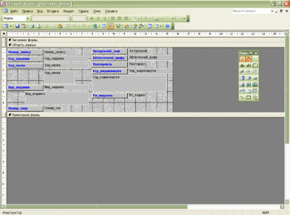 Відкриється нове вікно з пустим бланком форми в режимі конструктора.