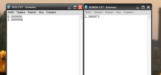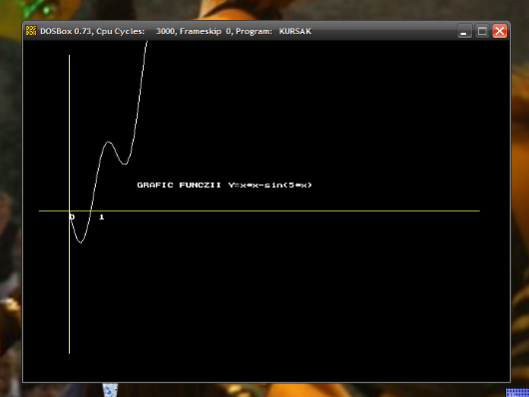 Дані для x, a та b завантажуються з текстових файлів KORENI.TXT та MEGI.TXT, точки будуються відповідно до цих даних. Після кожного натиснення будь-якої клавіші зчитуються наступні дані, аж поки не знайдемо значення x із заданою точністю.