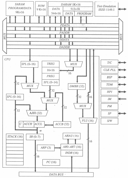 Структуру типового представника сім'ї з фіксованою комою МП TMS320xC5x наведено на рисунку 2.2.1.