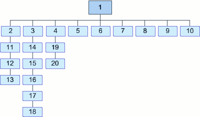 Сайт с четырёхуровневой системой навигации (большая глубина сайта бывает в особо сложных сайтах, и при ошибке веб-дизайнера или заказчика, пожелавших иметь подобную структуру сайта)