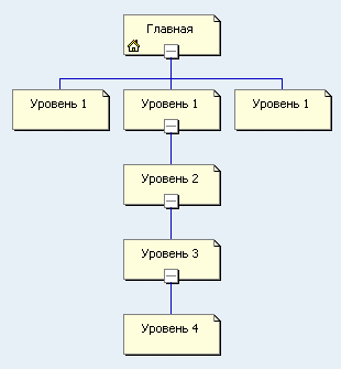 Главную (домашнюю) страницу сайта, как правило, не считают за уровень. Второй и последующие уровни имеют нумерацию на единицу меньше.
